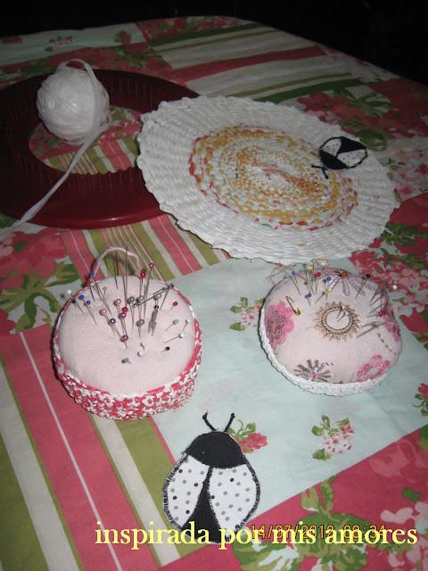 Busqué mis agujas y me entretuve probando tejer con bolsas plásticas.Me gustó el resultado y me hice unos alfileteros en crochet ...