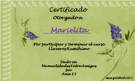asi que pasé el curso de llaveros y este fue mi certificado por hacerlo, ya saben que en el foro me encuentran como Marielita!!!