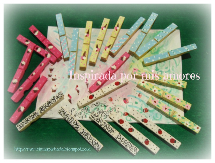 Y comencé a hacerlas sin un diseño previo, solo iba haciendo pruebas en un papel en blanco y luego directamente sobre las pinzas con pincel y acrilicos, y con marcadores, las ideas fueron surgiendo.