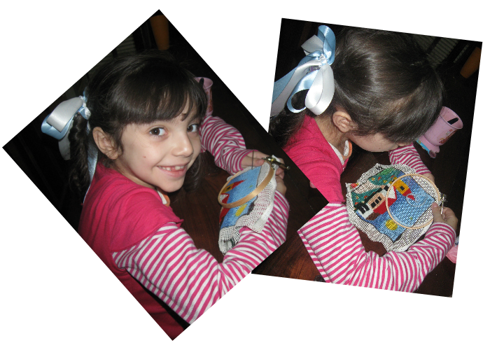 Qué linda escena familiar, es una ternura verlas tan entretenidas, Y tu "reto" está precioso. Me encanta la cartera del post anterior. Creo que voy a hacerme una con los jeans que andan por ahí. Besitos.
