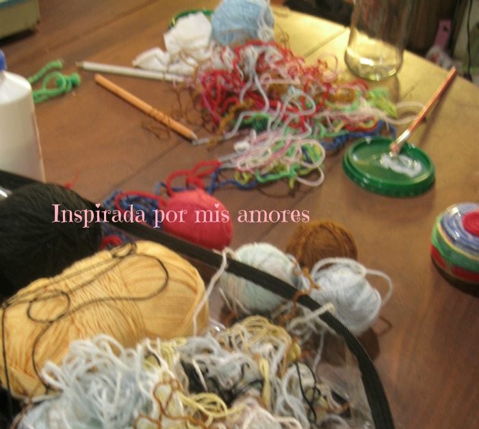 mientras que con paciencia empecé a separar mis ovillos enredados, y todos esos restitos de lanas de colores se me ocurrió un modo de entretener a mis princesas