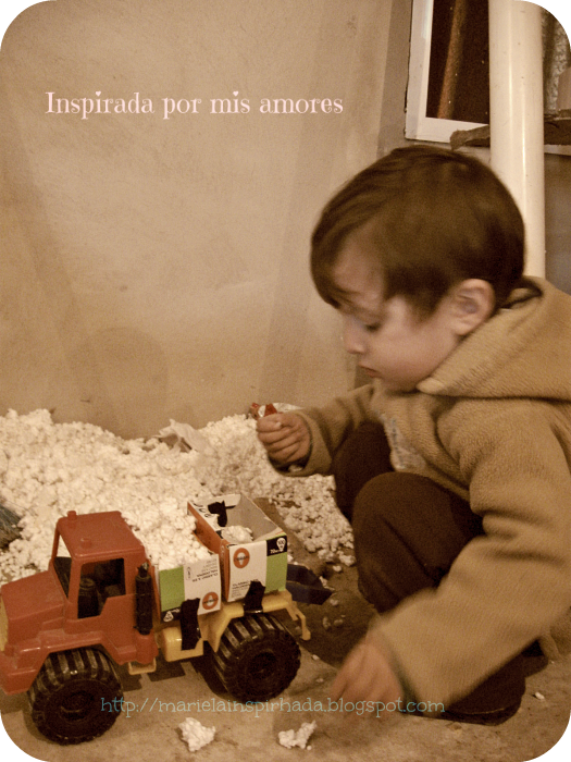 A pesar de que ahora nos movemos entre ladrillos y materiales, cuando vamos todos ya nos sentimos como en casa. Franco también esta hecho un mini constructor, con su camión (de carga, improvisado con unas cajitas) va cargando lo que encuentra . A las nenas les da por la repostería y preparan pastelitos de arena.